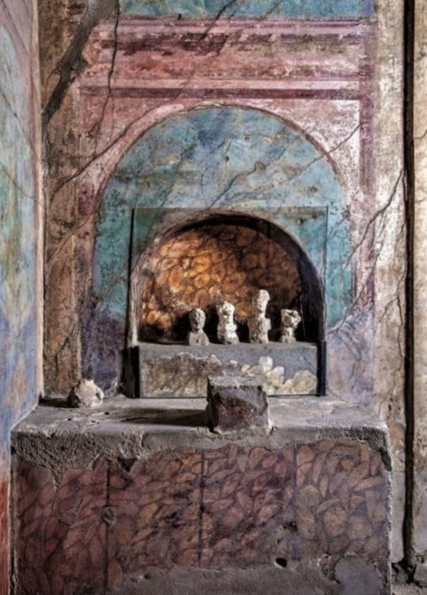 Из этого обычая выросла римская традиция делать из воска посмертные маски родственников и хранить их в домашних ларариях. На основе этих масок заказывали бюсты из более долговечных материалов — дерева, глины или даже мрамора. Таким образом уже ушедшие в мир иной представители рода «оставались» в доме, охранять и защищать своих потомков.