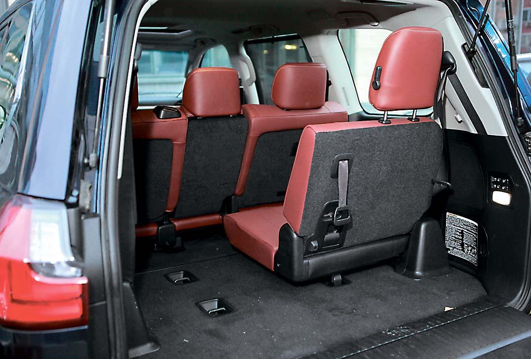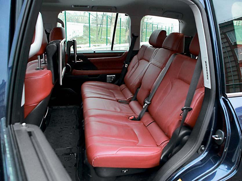 Салон, как ни странно, не такой уж и просторный. Во втором ряду кресел запаса для ног хотелось бы больше. А на третьем ряду взрослым пассажирам будет совсем уж некомфортно. Бензиновый V8 с отдачей в 367 л.с. хорош для машины не столь большой и тяжелой, как LX. Для него этот двигатель готов обеспечить разгон до 100 км/ч за 7,7 с. За этот не самый впечатляющий в автомобильном мире показатель приходится расплачиваться частыми посещениями АЗС. По данным производителя, Lexus LX в смешанном цикле требуется 14,4 л топлива на 100 км пути. На деле же эта цифра гораздо больше.