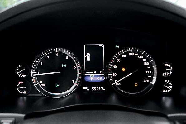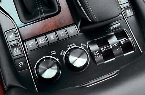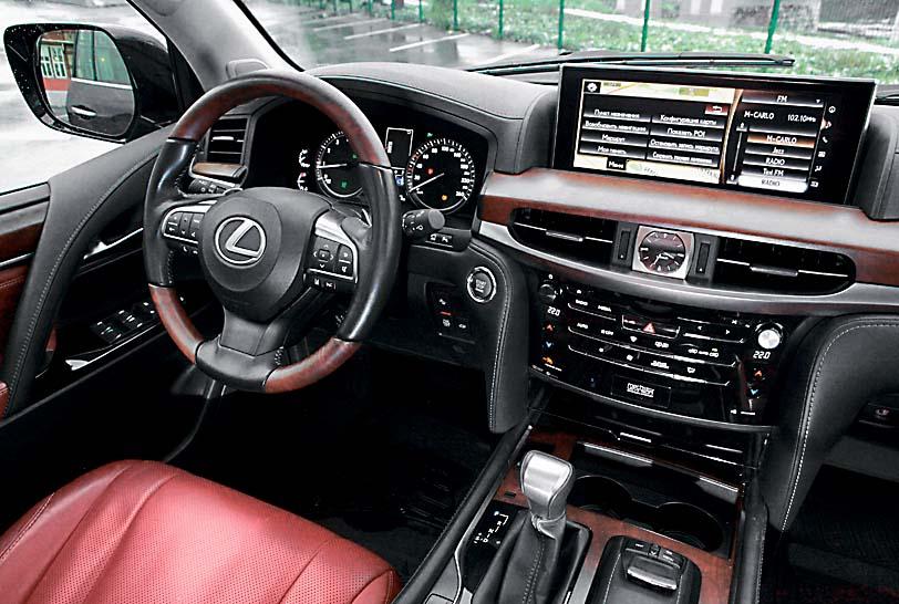 В Lexus не поскупились на оборудование. Перечисление всего оснащения внедорожника занимает не одну страницу. Различных «электронных помощников» здесь с избытком. И пользоваться этой россыпью кнопок не так-то просто. Язык, на котором Lexus говорит с водителем, не всегда логичен, а принцип устройства приборной панели рассчитан на «уверенных пользователей» японского бренда. Тем же, кто с маркой знаком не так близко, придется привыкать к общению с LX. Чего только стоит джойстик, который отвечает за управление большинством функций! Даже Майкл Граб, умеющий строить балансирующие пирамиды из камней, вряд ли смог бы попасть с первого раза в нужный пункт меню этим до невозможности нервным «курсором».
