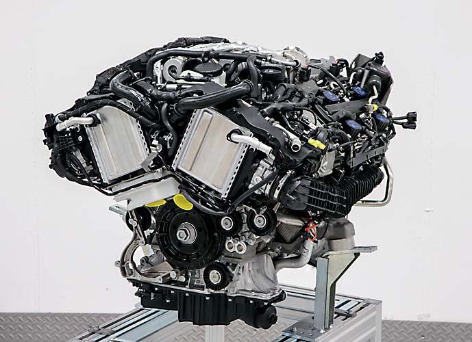 Четырехлитровый двигатель с заводским обозначением M 176 разработан спецами из AMG и предназначен для обновленного S-Класса. Заявленная мощность 8-цилиндрового агрегата – минимум 476 л.с., крутящий момент – около 700 Нм. Цифры, сопоставимые с данными ныне действующего 4,7-литрового M 278, зато расход – на 10% ниже. Экономия достигается не только за счет снижения рабочего объема, но и способности мотора отключать при частичных нагрузках половину цилиндров – 2-й, 3-й, 5-й и 8-й. Кроме того, на рабочую поверхность цилиндров в алюминиевом блоке нанесено особое запатентованное покрытие Nanoslide – стойкий к износу состав на основе железа, способный хорошо удерживать смазку и при этом минимизировать трение.