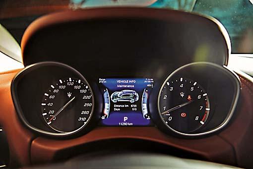 Внутри много знакомых деталей – фамильные драгоценности, знаете ли. Однако передняя панель совсем не такая, как в седанах Maserati. Да и экраны, что на консоли, что на щитке приборов, выглядят по-другому. А на тоннеле рядом с ручкой управления медийной системой расположилось управление режимами движения и высотой подвески. И все же как ни крути – ручку, разумеется – высота всегда остается большой. За рулем чувствуешь себя уверенно – обзор отличный по всем направлениям. Или почти по всем – плоховато видно назад в три четверти, да и отражение выпуклого капота в лобовом стекле порой мешает. В остальном компоновка водительского места намекает на спортивные гены: небольшой наклон рулевой колонки, подушка кресла с хорошей поддержкой, удобно расположенный педальный узел (опционально – регулируемый), но главное – кресло с выверенным профилем подушки и спинки, кроме того, отделанное соответствующими статусу материалами. Как и на Ghibli, клавиша пуска двигателя расположена слева от рулевой колонки и немного спрятана от взгляда ободом. Турбодизель запускается без стука, а звук его в салоне почти не слышен: проработка шумоизоляции (предусмотрены даже двойные боковые стекла) позволила избавиться и от звуковых раздражителей в движении. Причем настолько хорошо, что до ушей доносится лишь слабый гул от качения шин. Картину комфорта на уровне фантастики дополняет и способность пневмоподвески легко проглатывать неровности. Причем если обычно такому типу ходовой свойственна не самая приятная склонность к раскачке, то здесь на нее лишь намек, да и то – призрачный. По существу, можно ехать в атмосфере полнейшей расслабленности.