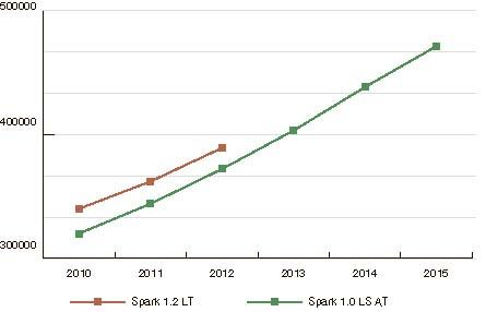 Поставляемые в Россию автомобили оснащались одним из двух моторов (Евро 4) мощностью 68 или 81 л.с., объемом 1,0 и 1,2 л соответственно. Оба работают с 5-ступенчатой «механикой», а 1,0-литровый мотор вдобавок сопрягается с 4-ступенчатым автоматом. Самоотверженно гоняться на вторичке за такой версией не советуем. С динамикой у нее полный швах. Ни обогнать, ни вовремя ускориться. Хотя в обслуживании она вряд ли будет дороже. И моторы, и обе трансмиссии третьего «Спарка», машинка-то еще совсем свежая, работают исправно и среди капризных не числятся. А в силу относительной простоты конструкции и умеренного количества сложной электроники, думается, и впредь особых проблем не доставят.