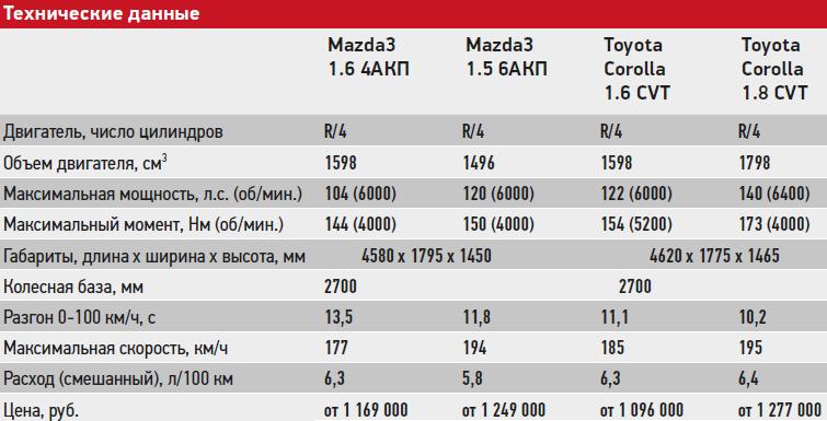 При первом знакомстве Mazda3 очаровывает. Классный дизайн, интересный интерьер, азартная управляемость. Toyota выглядит более традиционно и на фоне соперницы немного теряется, да и по ездовым качествам уступает. Однако в вопросах удобства, продуманности и комфорта Corolla стоит на ступеньку выше. У нее лучше эргономика, больше внимания уделено мелочам и деталям, качество отделки чуть выше.