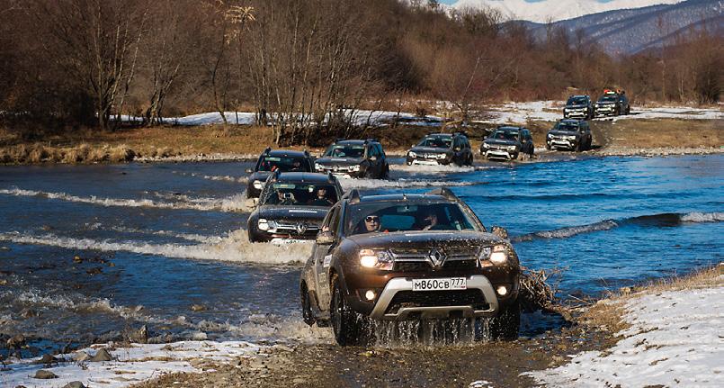 Или вот – брод. Вода выше порогов, почти достает до фар. Это и бродом-то назвать сложно – река и есть река. И что? Горная речка с каменистым дном оказалась вообще легкотней для Duster. Салон и багажник полностью герметичны, мотор не залит – безо всяких шноркелей. Раз брод, два, три, четыре – на Кавказе им теряешь счет. «Дастеру» нипочем, можно лишь радоваться, что колеса после слякоти отмылись.