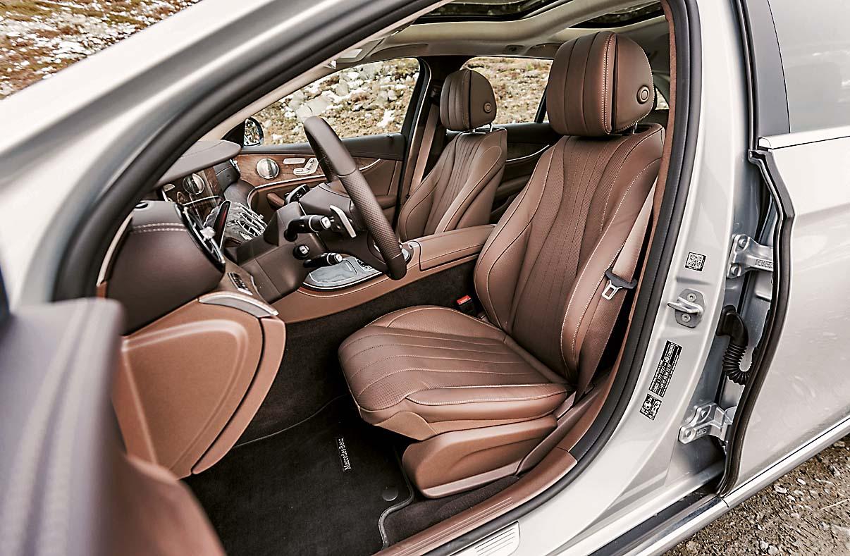 Но для нас куда интереснее младшая модификация 220d. Ведь это версия машины оснащена 2,0-литровой наддувной «четверкой» из нового семейства модульных моторов. Двигатель с внутренним заводским индексом OM654 развивает 194 л.с. и 400 Нм. Конечно, после старшего дизеля он воспринимается не с таким восторгом, однако его способности тоже весьма убедительны. Разгон до «сотни» за 8 с и 231 км/ч «максималки» – это лишь цифры на бумаге. На деле же, как и старший агрегат, «четверка» обеспечивает бодрый подхват с низов. Причем «полка» момента здесь шире: в максимальном значении он доступен с 1600 об/мин вплоть до 2800 об/мин. А максимальная мощность достигается при 3800 об/ мин. Да, ускорения с ходу даются этому агрегату не так легко и непринужденно, но в остальных случаях он держится молодцом. Прибавьте к этому и его скромный аппетит. Заявленный средний расход в смешанном цикле всего 5,3 л. Подозреваем, что цифра эта очень близка к реальности, поскольку в ходе теста в загородном режиме движения бортовой компьютер демонстрировал расход на уровне 4,9 л. Ну разве не чудо?
