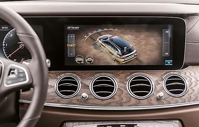 Еще меньше перемен внутри. А точнее, она всего одна. И заметна глазу не сразу, а лишь когда автомобиль заведен. В отличие от стандартного E-Класса в режимах движения этого универсала появился пункт All-Terrain. Причем, при его активации на экран мультимедиа можно вывести данные не только о настройках силового агрегата, но и информацию о направлении движения машины, углах поворота колес, продольного или поперечного крена, а также степени нажатия на педаль газа или тормоза.