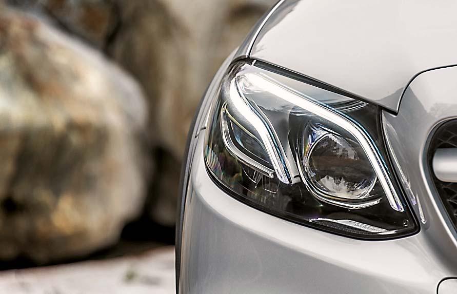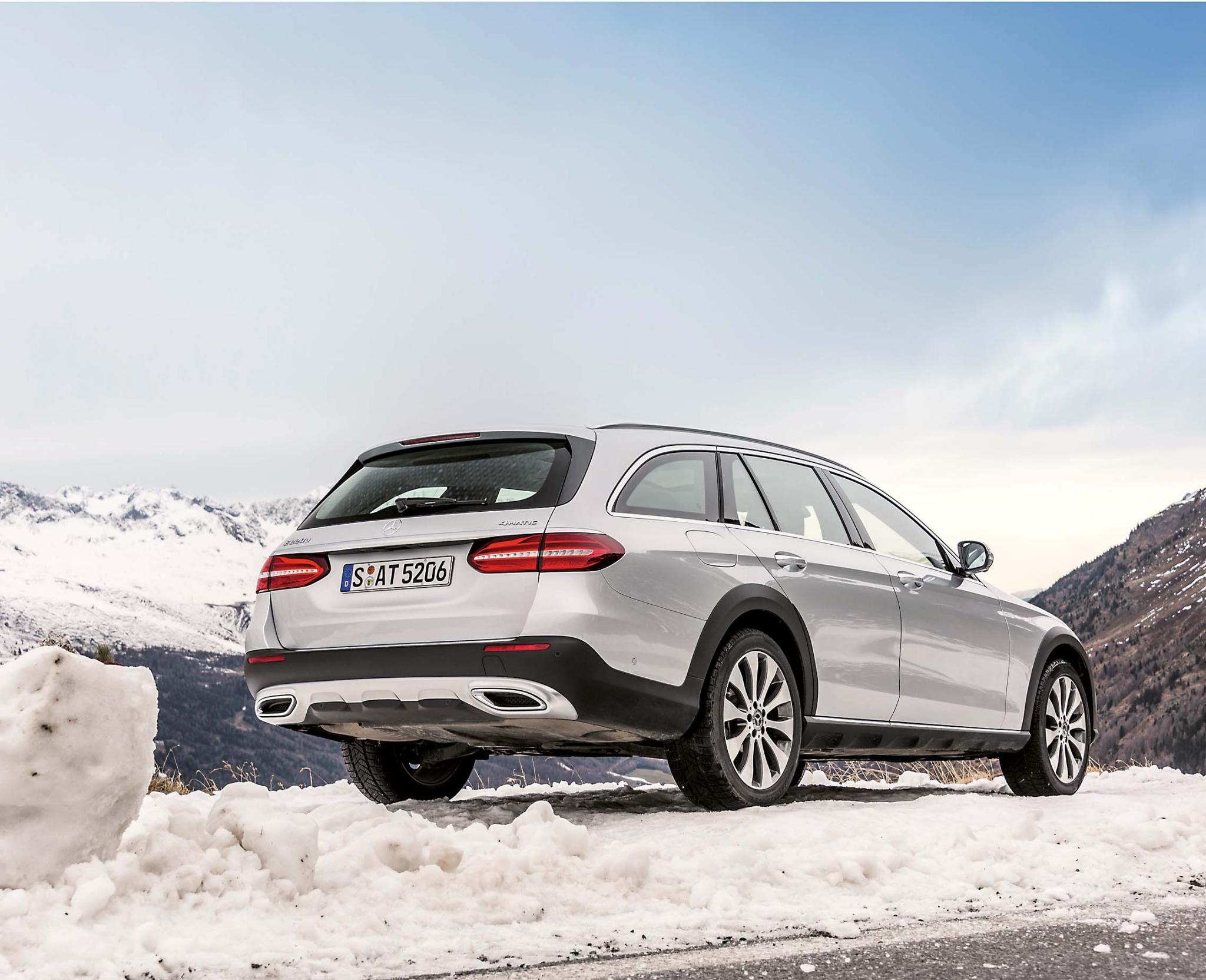 Все внешние изменения новинки – строго в канонах жанра. От обычного «эстейта» E-Класса версия All-Terrain отличается лишь пластиковой защитой по периметру кузова да переоформленными бамперами с металлическими защитами на нижних кромках. Кроме того, здесь новая радиаторная решетка с двумя крупными ламелями с прорезями в стиле кроссоверов Mercedes-Benz.
