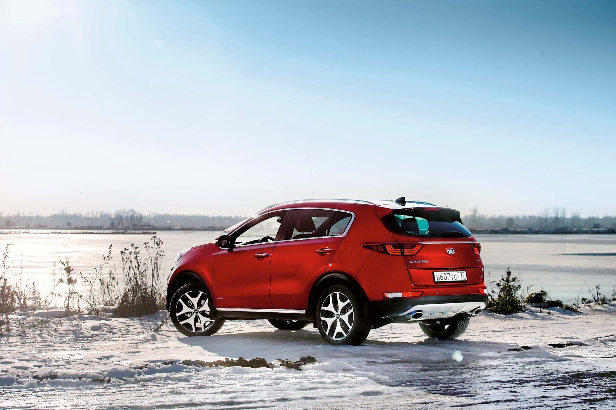 На скользком проселке с включенной межосевой блокировкой Sportage кушает немногим больше. Крутые подъемы, снежный покров высотой в полколеса едва ли напрягают тяговитый дизель. Способностей системы полного привода и силового агрегата хватило бы и для более серьезной работы, но клиренс в 182 мм и короткие ходы подвески сильно ограничивают внедорожный потенциал машины. Асфальт ей нравится намного больше. По шоссе Kia бежит резво и комфортно, не обращая внимания на мелкие выбоины и стыки. Не портят плавность хода и большие 19-дюймовые колеса с низкопрофильными шинами. Но для зимы я бы выбрал диски диаметром 17 дюймов и шины повыше, чтобы ход был помягче, а нагрузка на подвеску меньше. Размеры тормозных дисков позволяют такую рокировку.