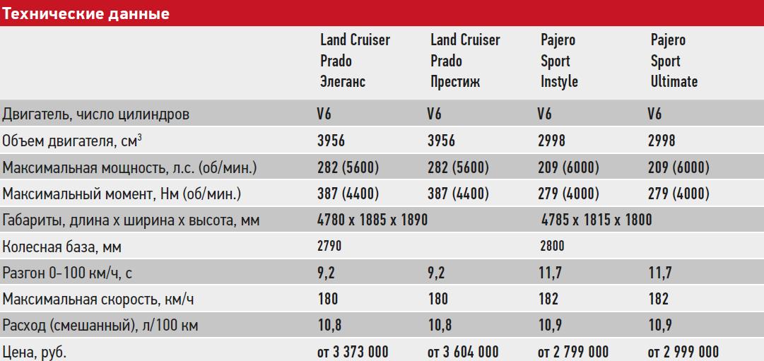 Кроме нашей тестовой модификации Toyota предлагается в России и с «маленькой» бензиновой «четверкой», и с турбодизелем. Есть из чего выбирать. А дизельный Pajero Sport обещают привезти к нам лишь в апреле. Если же говорить конкретно о версиях с бензиновыми «шестерками», то Prado все же немного уступает Pajero Sport. Но надо понимать, что основная причина этого отставания – солидный возраст модели. Впрочем, масштабное обновление семейства Land Cruiser не за горами.