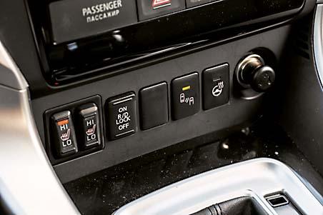 Посадка за рулем по-легковому удобная. Спинка кресла спрофилирована удачно, поэтому сидеть комфортно. Впрочем, идеальным ничего не бывает. Поэтому пару огрехов в салоне Pajero мы все же обнаружили. Во-первых, кнопка старта расположена слева от руля в не самом удобном месте. А во-вторых, несмотря на солидные размеры машины, за рулем слегка тесновато. Нет, места тут достаточно и по длине, и над головой, но массивная центральная консоль слегка придавливает правую ногу рослым водителям. И смириться с этим кому-то будет нелегко.