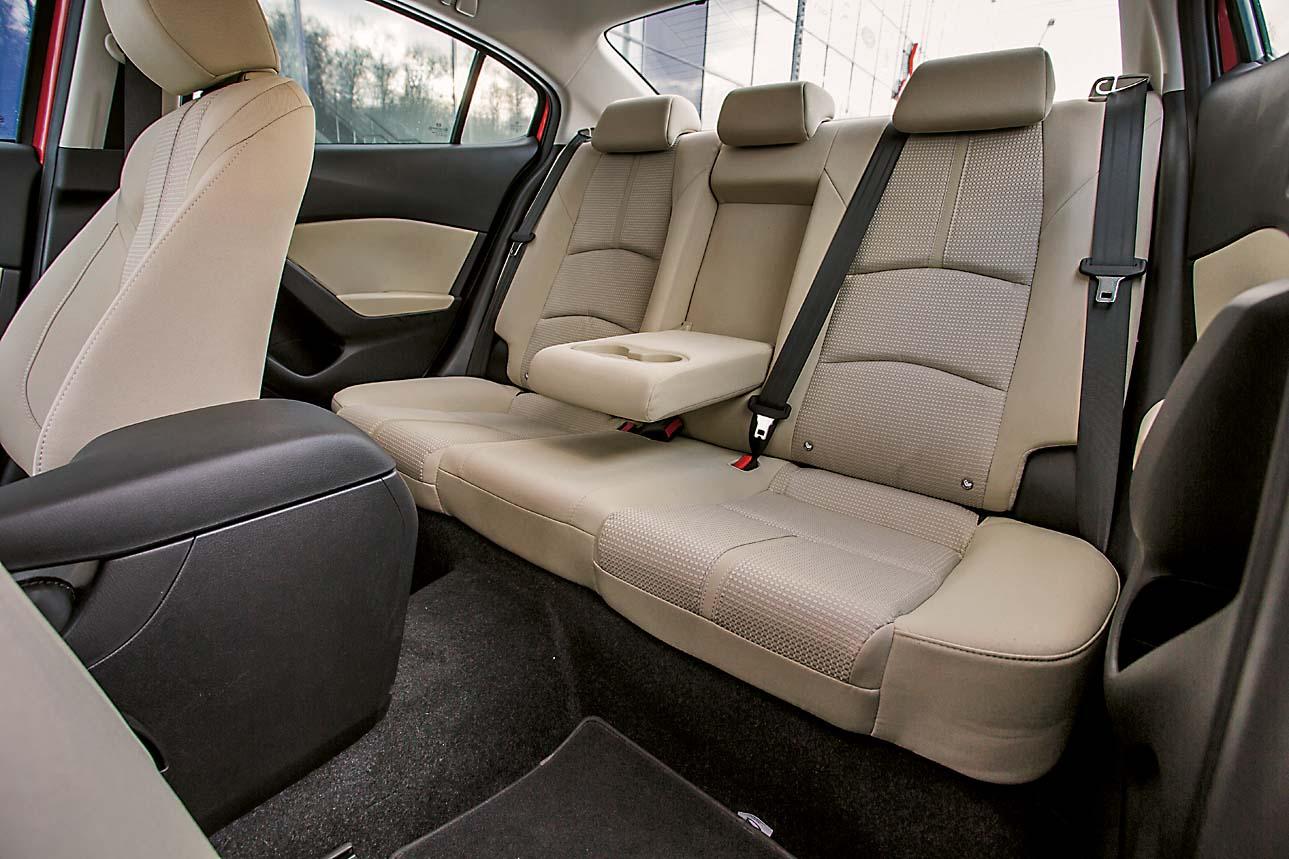 С нынешней же «Маздой» дела обстоят совсем иначе. Список оборудования радует глаз. Топовая версия Exclusive за 1 356 800 рублей, что была у нас в редакции целый месяц, оказалась богато оснащена. В холода, например, незаменимы двухзонный климат-контроль, подогрев передних кресел и – особенно – руля. Двигатель Mazda3 в мороз прогревается довольно неохотно, а вот «теплое» оборудование начинает работать практически сразу. Интерьер Mazda3 вообще дружелюбен к водителю и пассажирам. Светлая обивка сидений – настоящая находка. Редко встречающийся в суровых российских реалиях колер пришелся Mazda3 к лицу. С ним салон смотрится дорого и ярко. И материал оказался на удивление немарким – за месяц не появилось ни одного пятна. А вот с мультимедийной системой подружиться оказалось сложновато. Алгоритм ее работы не самый логичный, расстраивает и некоторая ее медлительность. Да и управление джойстиком на центральном тоннеле, успешно реализованное некоторыми конкурентами, на «Мазде» оказалось не лучшим решением. Для того, чтобы, например, ввести нужный пункт назначения в штатный навигатор, приходится совершать слишком много движений, блуждая по пунктам меню, а потом вводя точный адрес. Во время движения справится с этой задачей не так-то просто.