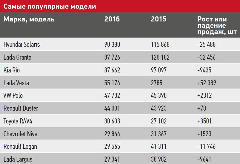 Среди популярнейших моделей произошли заметные перестановки. Рейтинг возглавил Hyundai Solaris. Но вряд ли бы Lada Granta уступила лидерство, если бы не ее родственница Vesta, переманившая на свою сторону солидную долю потенциальных покупателей сестрицы. Но в десятке лучших впервые оказалась не только Vesta. Еще один дебютант высшей лиги – Toyota RAV4. Обновление в 2015 году и недавнее расширение списка комплектаций пошли японскому кроссоверу явно на пользу. Неплохой рост показал и рестайлинговый седан Volkswagen Polo, получивший к тому же новые двигатели. И хотя Hyundai Creta не вошла в данный список, эта машина вполне заслуживает звание самого успешного новичка года. За пять месяцев в России было продано 21 929 таких кроссоверов.