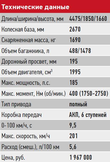 Похвальная динамика, надежная управляемость, достойные внедорожные качества, удобный салон, вместительный багажник, небольшой расход топлива