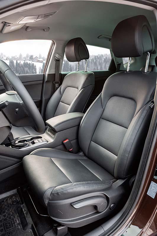 И хотя дизельный Tuscon – далеко не статист на бездорожье, именно на трассе ты получаешь от этой версии больше всего кайфа. Она катит уверенно, без надрыва, готовая прибавить еще и еще. У мотора с крутящим моментом 400 Нм огромный запас энергии, и нет ощущения, что для работающего в паре с ним 6-ступенчатого автомата это было бы стрессом. Коробка работает четко, быстро и без рывков.