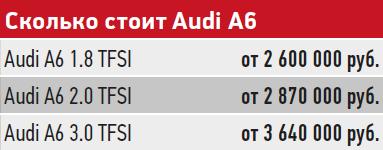 На трассе или пустынных городских улицах A6, даже с не самым мощным мотором, превращается из сдержанного комфортного транспортного средства в автомобиль, способный удивить. Здесь выясняется, что амортизаторы инженеры настраивали далеко не только ради комфорта и возможности плавно преодолевать стыки и ямы. Довольно жесткая по меркам класса подвеска становится особенно ценна, как только впереди замаячит крутой поворот. С ним A6 разделывается без заминки и борьбы. При этом пассажиры и бровью не поведут – умиротворяющую атмосферу в салоне не нарушить даже очень активным стилем езды. A6 вообще один из немногих автомобилей, умеющих угодить и водителю, и пассажирам одновременно. За рулем Audi интересно, хоть и не настолько, чтобы возомнить себя профессиональным пилотом на гоночной трассе, а пассажирам одинаково комфортно как на переднем кресле, которое регулируется в огромном диапазоне, так и сзади, где места по всем направлениям вдоволь. Плюс вместительный багажник, качество материалов, оснащение, современные системы безопасности… Да что еще нужно?