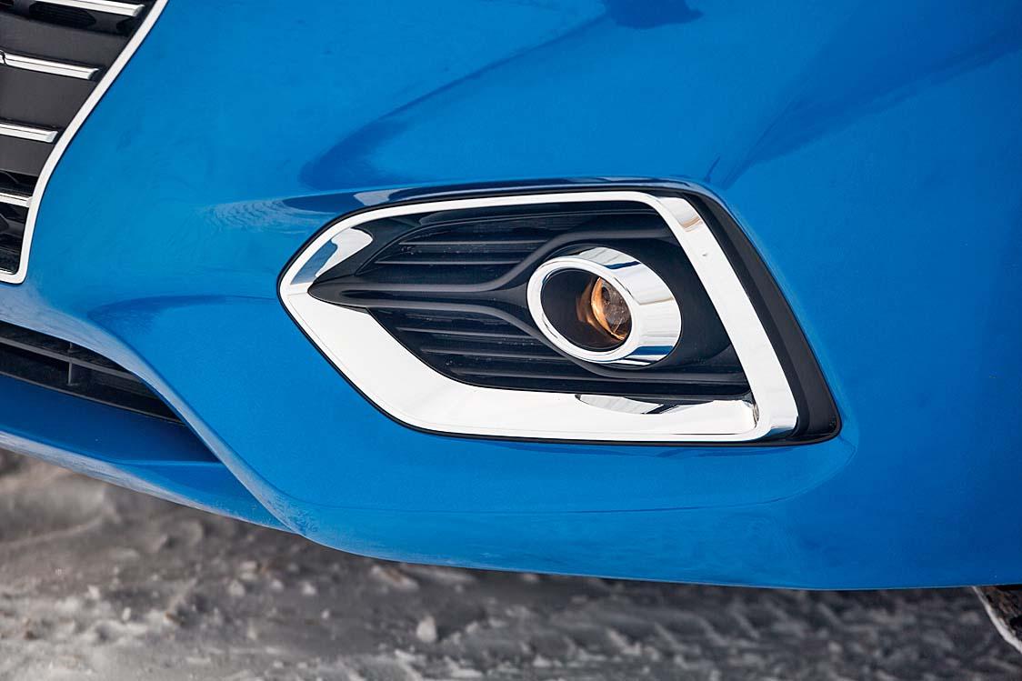 «Солярис» подрос в ширину и длину на 30 мм (соответственно до 1700 и 4405 мм), неизменными остались клиренс (160 мм) и высота автомобиля (1470 мм). На кузове никаких стреловидных выштамповок и резких граней. Новая решетка, забегающие на крышку багажника фонари и более пропорциональный и сбалансированный силуэт заставляют вспомнить о старшем родственнике, седане Elantra. Их родство внешностью не ограничивается, но об этом чуть позже. Трехсантиметровый прирост внешних габаритов, как, впрочем, и аналогичное увеличение колесной базы (до 2600 мм), несильно отразились на салоне. На задних рядах все так же для ног вполне достаточно места, но его чуть не хватает по высоте, и прибавка в 3 мм между подушкой дивана и потолком ничего не меняет – особо долговязые граждане помнут прическу об обивку потолка. Зато холодно не будет – Solaris впервые предлагает двухступенчатый подогрев заднего ряда (опция).