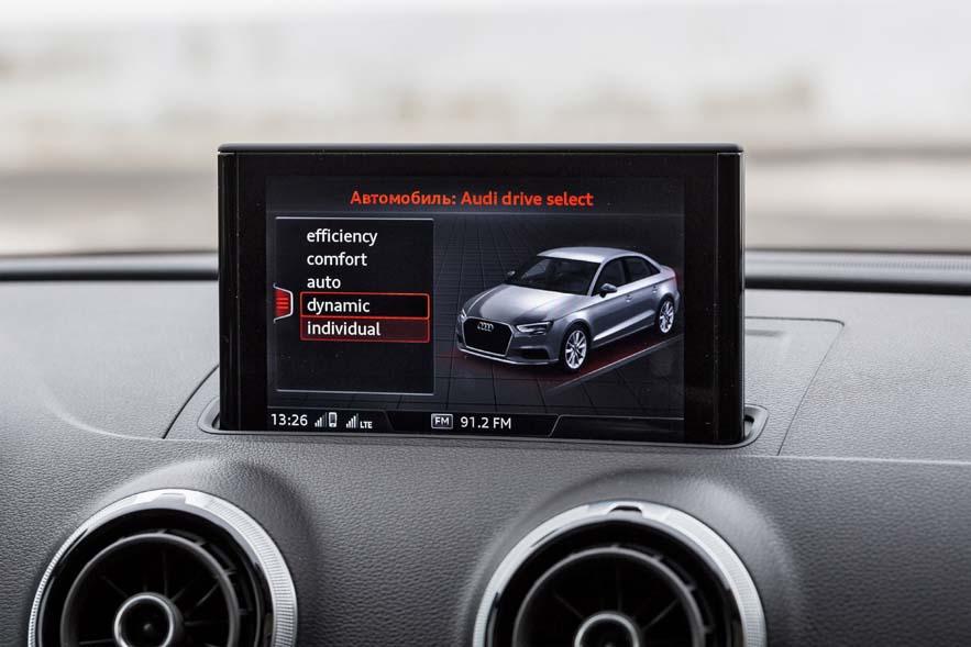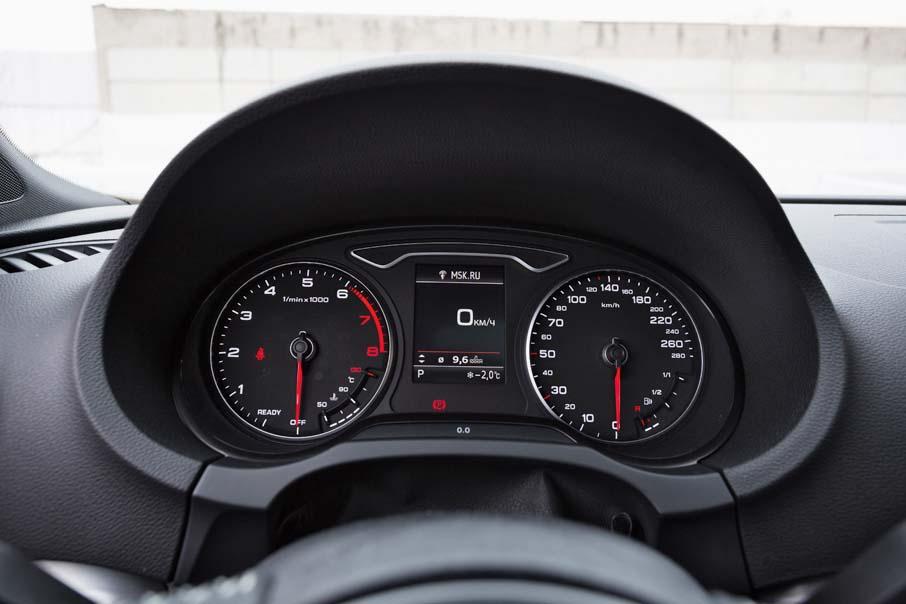 В общем, принимая некоторые меры предосторожности, диктуемые скромным дорожным просветом, передвигаться на этом седане по зимним столичным улицам можно. А если погода преподнесла подарок в виде высушившего дороги солнышка, скорость передвижения можно существенно повысить. Турбомотор мощностью 150 л.с. совсем не против спортивных упражнений. Развиваемые им 250 Нм тяги энергично и легко разгоняют компактный Audi до скоростей, сильно превышающих легитимные в нашей стране пределы. Главное не душить двигатель и коробку «ошейниками» экологических режимов, а заодно деактивировать систему «старт-стоп», выключающую мотор во время остановок. Экономия от работы последней едва заметна, чего не скажешь про руль, который, лишившись помощи усилителя, «каменеет» еще до того, когда автомобиль полностью прекратит движение. Благо, как видите, спорное, как, впрочем, и гиперчувствительные парктроники. В остальном же работа технически сложного немецкого организма не вызывает вопросов. Нетрудно разобраться и в его изощренной богатой начинке. Но об этом – в следующем отчете.