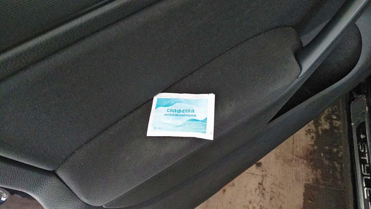 Владельцы машин с тканевой обивкой салона наверняка сталкивались с проблемой чистки дверей и подлокотников от белесых сальных пятен, неизбежно возникающих в местах соприкосновения с руками в жаркую летнюю погоду. В этой ситуации совсем не обязательно ехать на химчистку. Вернуть обивке прежнюю чистоту и свежесть можно с помощью обычных влажных салфеток. Такая гигиеническая процедура не займет много времени и стоит в общем-то копейки. Единственное ограничение – цвет обивки салона. С черным и темно-серым материалом все отлично, но на светлом могут остаться разводы.