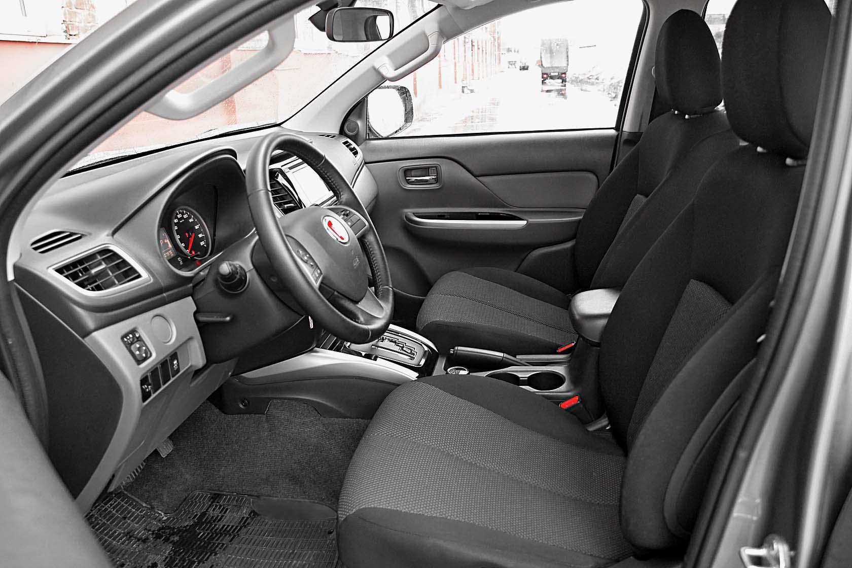 Интерьеры Fullback и Mitsubishi L200 идентичны – разница, по большому счету, в эмблеме на руле