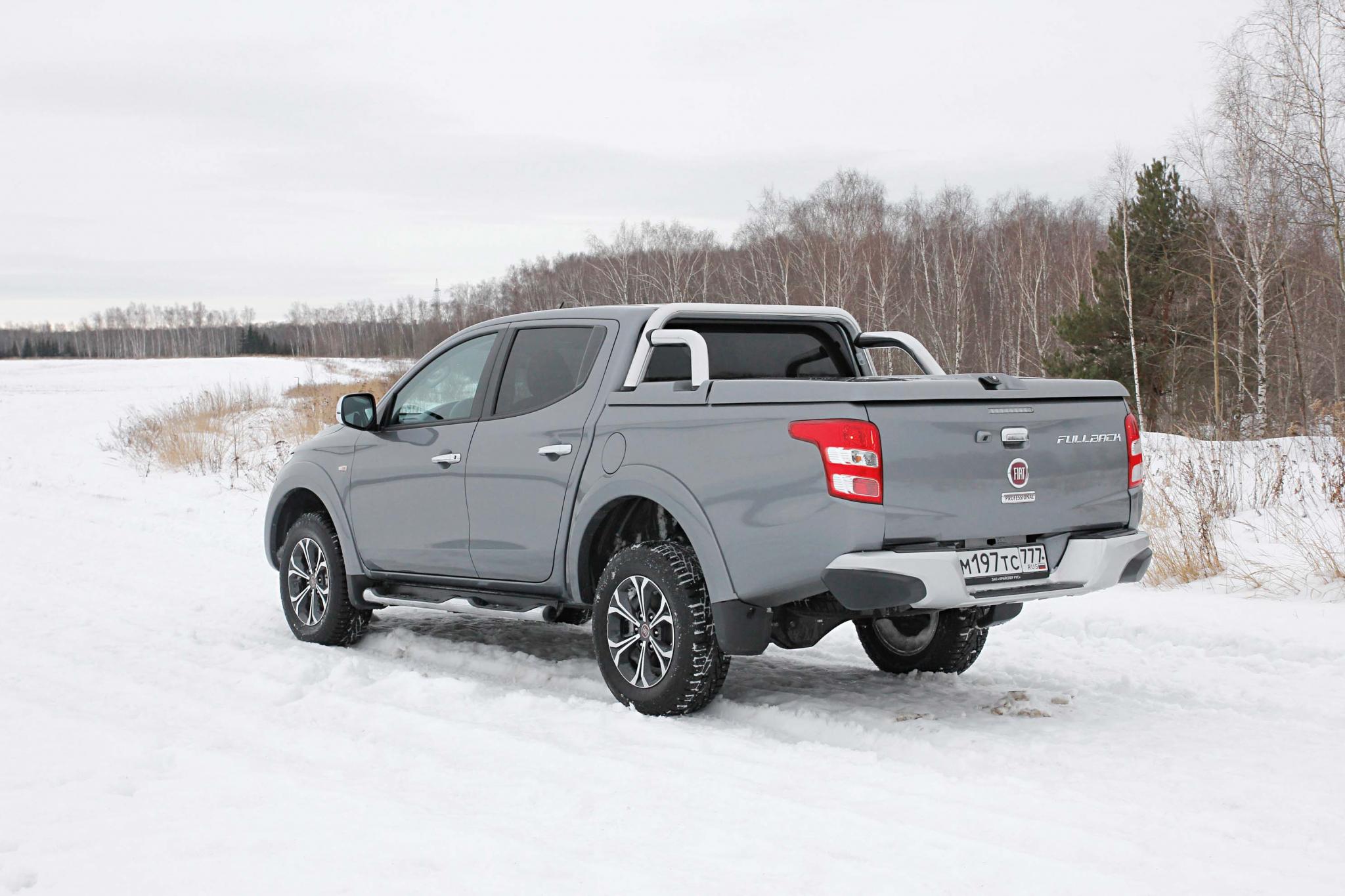 В движении Fiat Fullback с «младшим» дизелем и 5-ступенчатым автоматом вполне проворен – при маневрировании на городских улицах его внушительные габариты практически не мешают – удобно ориентироваться помогают крупные зеркала и камера заднего вида. «Грузовая» природа автомобиля с неразрезным мостом и рессорами сзади, конечно, ощущается – но назвать пикап чрезмерно жестким все же нельзя. Достаточно для такого автомобиля и возможностей «младшего» дизеля – недостатка тяги нет. Впрочем, мы и не пробовали нагрузить кузов «под завязку». А вот в глубоком и достаточно рыхлом снегу побывать пришлось, и лопата не потребовалась – на понижающей передаче, с включенными блокировками и вырубленной системой стабилизации Fullback отчаянно гребет колесами – и преодолевает ходом весьма «гиблые» места.