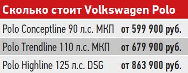 Последнее замечание – вовсе не упрек в адрес «спортсмена», скорее комплимент обычному Polo, с рождения отличавшемуся похвальными ездовыми манерами. Даже с базовой 90-сильной машиной приятно иметь дело. Двигатель мощностью 125 л.с. кардинально поведение автомобиля не меняет, но добавляет ему легкости и энергии. Как раз то, что нужно на трассе. И если дальние поездки для вас не редкость, к вооруженному турбомотором Polo есть смысл присмотреться. Он стоит на 14 000 рублей дороже себя 110-сильного. И, на мой взгляд, это вполне приемлемая доплата за лучшую тягу и меньший расход топлива. Однако есть одно «но». Указанная разница касается только машин с механической коробкой. Мотор в 125 сил + DSG стоит на 38 000 рублей дороже агрегата в 110 сил + АКПП. По-моему, это слишком.