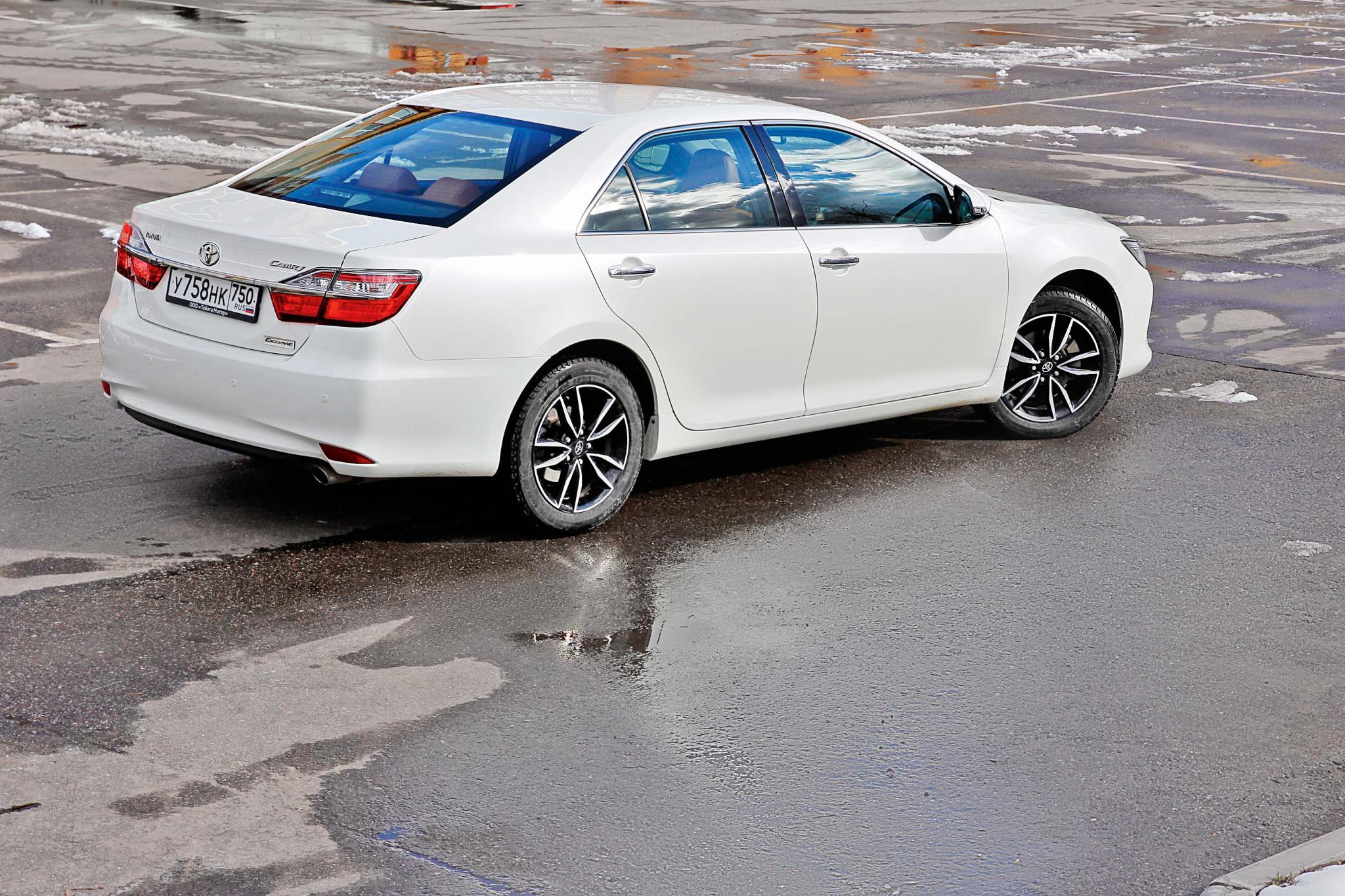 Эти сложности заставляют некоторых скептиков сомневаться в целесообразности покупки Camry Exclusive. Но ведь в этой машине есть не только мультимейдийка на «Андроиде». Комплектация предусматривает еще черные колесные диски специального дизайна да светло-коричневую кожаную обивку салона. Правда, на таких креслах очень заметны вещи, оставленные в салоне. Например, бросается в глаза детское кресло. В том числе потому, что задние стекла «в базе» не затонированы.