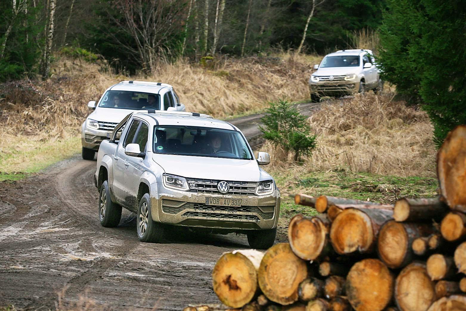 Сказавшему «А» должно говорить «Б». Так вот про армию – в прошлом году в мире было продано 477 тысяч коммерческих VW, 88,5 тысяч из которых оснащены полноприводной трансмиссией. Понятно, что весь модельный ассортимент по причине его широкого разнообразия на презентации представлен не был. Да этого и не требовалось. Ведь во многих модификациях применяется лишь несколько типов полного привода. Для полноприводной линейки T6 (Multivan, Caravelle, Transporter) и разнообразных Caddy используется электронноуправляемая муфта Haldex, в случае необходимости подключающая задние колеса в автоматическом режиме. Что касается пикапа Amarok 4Motion с АКП, то за распределение тяги по осям у него отвечает самоблокирующийся дифференциал Torsen. Для работы на тяжёлом бездорожье центр можно жестко заблокировать, задействовать «понижайку» и задний «самоблок», который входит в список опций.