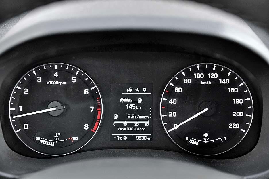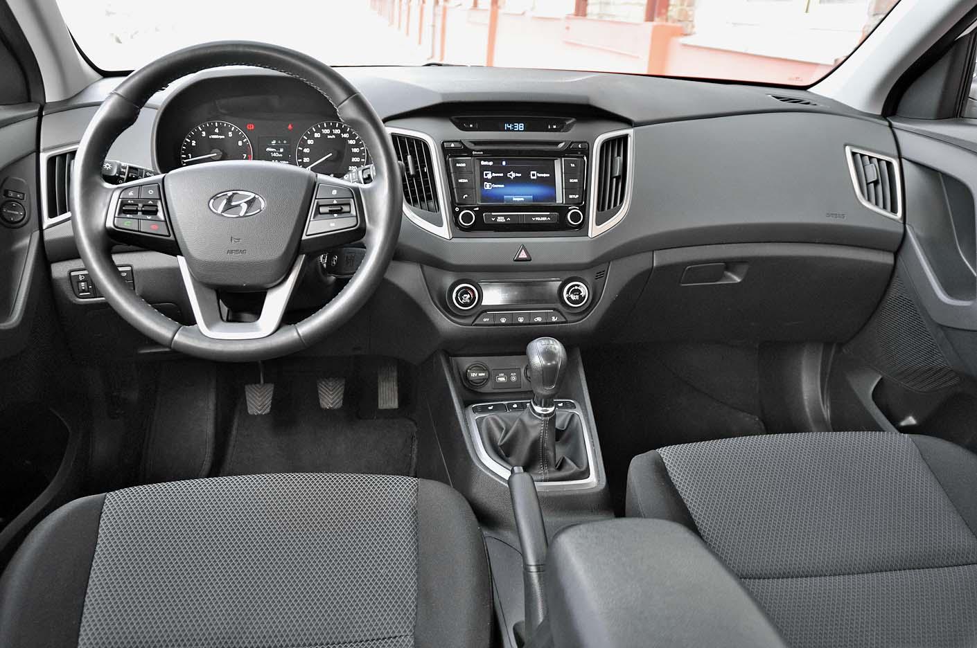 Продукты такого рода на нашем автомобильном рынке встретишь нечасто. Обычная тактика маркетологов в отношении машин массового сегмента выглядит следующим образом: в комплекте с базовым мотором идет минимальный набор благ (AБС, водительская подушка безопасности, пара электрических стеклоподъемников). Не исключено, что в следующей по уровню комплектации вы получите кондиционер, магнитолу и доступ к некоторым опциям. Но дверь к таким вкусностям, как хорошая мультимедийная система с сенсорным экраном, камера заднего вида, кожаный салон, отворяется перед покупателем лишь в случае приобретения самого мощного мотора, да еще с АКП. То-то я удивился, когда обнаружил, что всеми вышеупомянутыми богатствами, за исключением разве что кожаной обивки сидений, обладает Creta со 123-сильным мотором 1.6 и «механикой». На всякий пожарный проверил техпаспорт. Все сходится.