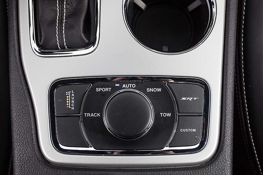 Для подробного рассказа об инженерных доработках, отличающих SRT от обычного Grand Cherokee, может не хватить и целой серии таких материалов. Поэтому проще будет, опустив некоторые глубоко технические подробности, вкратце поведать о том, чем эта машина отличается от гражданской версии. Главное в том, что в подвесках «эсэртишки» нет пневматических элементов. Клиренс автомобиля – фиксированный и не меняется в зависимости от выбранного режима движения. Да и из самого набора вариантов настроек мехатроники исключены offroad-режимы. Однако на место стандартных амортизаторов пришли электронноуправляемые, с изменяемой жесткостью. Поэтому в режимах движения Grand Cherokee SRT добавились пункты Sport и Track. Тем более, что последние меняют не только настройки шасси, но и пары мотор-трасмиссия, которая состоит из 468-сильного атмосферного V8 и 8-ступенчатого автомата ZF.
