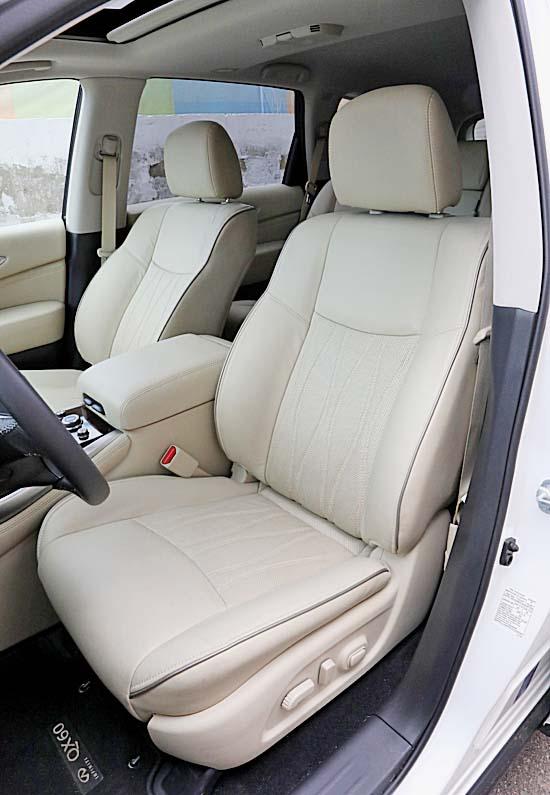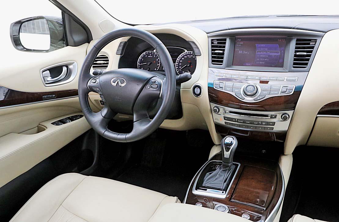 Оформление интерьера тоже поддерживает идею обзавестись детьми. И хорошо, что малышня не заметит некоторые стилистические проколы в оформлении салона. Вот, например, сочетание трех цветов – светло-бежевого, коричневого и черного – на центральной консоли не всем эстетствующим придется по вкусу. Но это, разумеется, придирки, которые можно списать на особенности цветовосприятия. Во всем остальном интерьер близок к идеалу. Логика расположения кнопок, шайб и тумблеров прозрачна и строга. Эргономика отличная, качество материалов, использованных в отделке Infiniti QX60, на все сто соответствует высокой цене автомобиля.