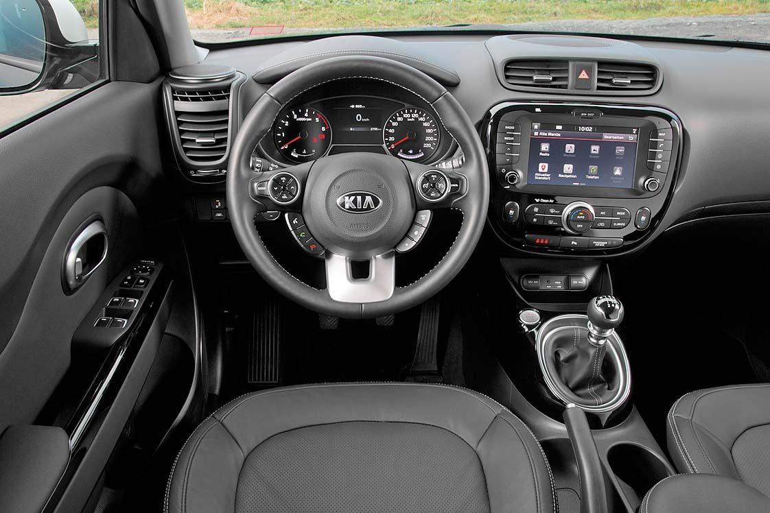 Зато технических новшеств гораздо больше, чем стилистических. Первое, что замечаешь, когда садишься в Soul – это новая мультимедиасистема. Диагональ центрального монитора, сменившего 4,3-дюймовый дисплей, – 5, 7 или 8 дюймов, в зависимости от комплектации. Если подружить телефон с головным устройством, то навигация фирмы TomTom сможет подкачивать информацию по Интернету со своего сервера, и на ее карте будут отображаться пробки. А использовать другие приложения со смартфона позволит поддержка Apple CarPlay и Android Auto. И это лишь сразу заметный глазу апгрейд. А ведь есть еще значительно расширившийся список опций Soul, в котором появились система контроля слепых зон, функция помощи при выезде с парковки задним ходом, обогрев форсунок омывателя лобового стекла, биксеноновые фары и много чего еще. Кроме того, на «Соуле» присутствует система Drive Mode Select с режимами движения Normal, Eco и Sport. Она уже знакома нам и по cee’d с Optima, в зависимости от выбранных настроек электроника меняет отклик педали газа, усилие на руле и алгоритм работы автоматической трансмиссии.