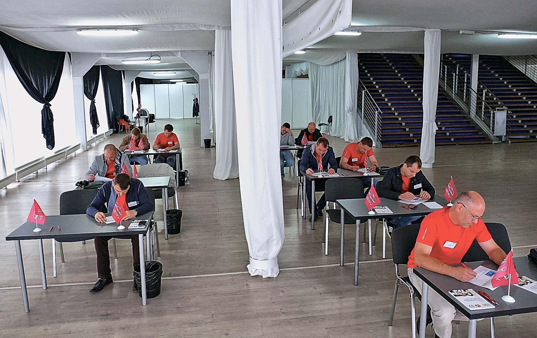 Помещение павильона, где проходит конкурс, большое, но почти пустое. Нет суеты, не снуют конкурсанты и организаторы, нет ожидаемой зрелищности. Мирно пьют чай с пирожками несколько мужчин в красных футболках с логотипом Chery. Это те самые «мастера», технические специалисты и диагносты, участвующие в полуфинале. Они вошли в двадцатку сильнейших по итогам отборочного этапа и сегодня приехали в Москву, каждый от своего дилерского центра.