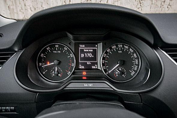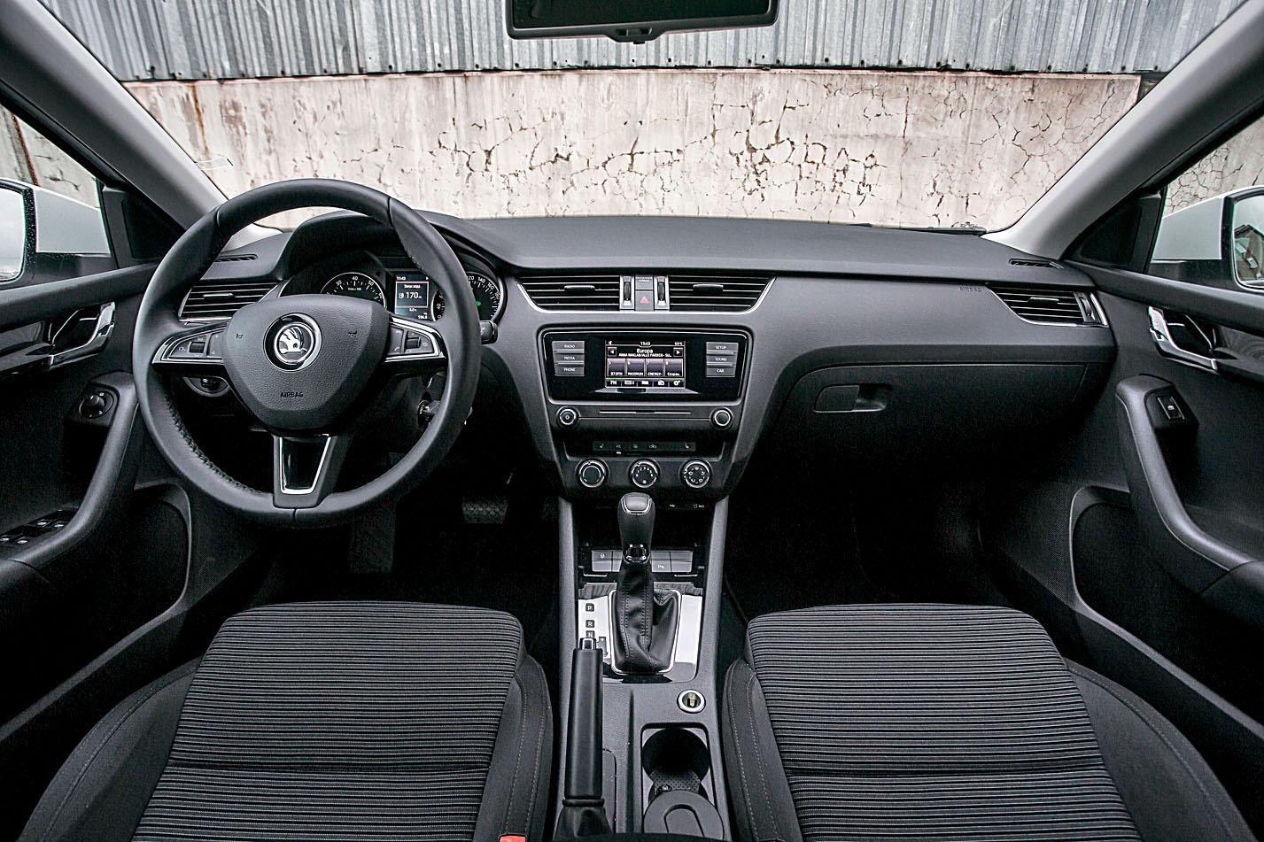 И ведь в этом пакете, с которым Octavia прибавляет в цене лишь на 43 200 руб., нет ничего лишнего. Bluetooth – необходим; подлокотник, розетка, противотуманки, парктроники спереди и сзади, легкосплавные диски, кожаный руль с управлением магнитолой – тоже штуки крайне полезные. Поспорить можно насчет спортивных передних сидений. Вроде, кажется, не нужны. Но в реальности они оказываются удобнее стандартных, особенно для людей с чувствительной спиной. Высидеть в многочасовой пробке или в путешествии тут проще. Благодаря спецпакету Skoda Octavia, честно говоря, сама по себе довольно аскетичная в исполнении Ambition, мистическим образом превращается в «отлично оснащенный автомобиль». По крайней мере, именно так эту версию воспринимаешь. Единственное, чего тут все-таки не хватает, – это климат-контроля. У такой машины простой кондиционер. Впрочем, отсутствие кнопки «Авто» ничуть не мешает настроить комфортную температуру.