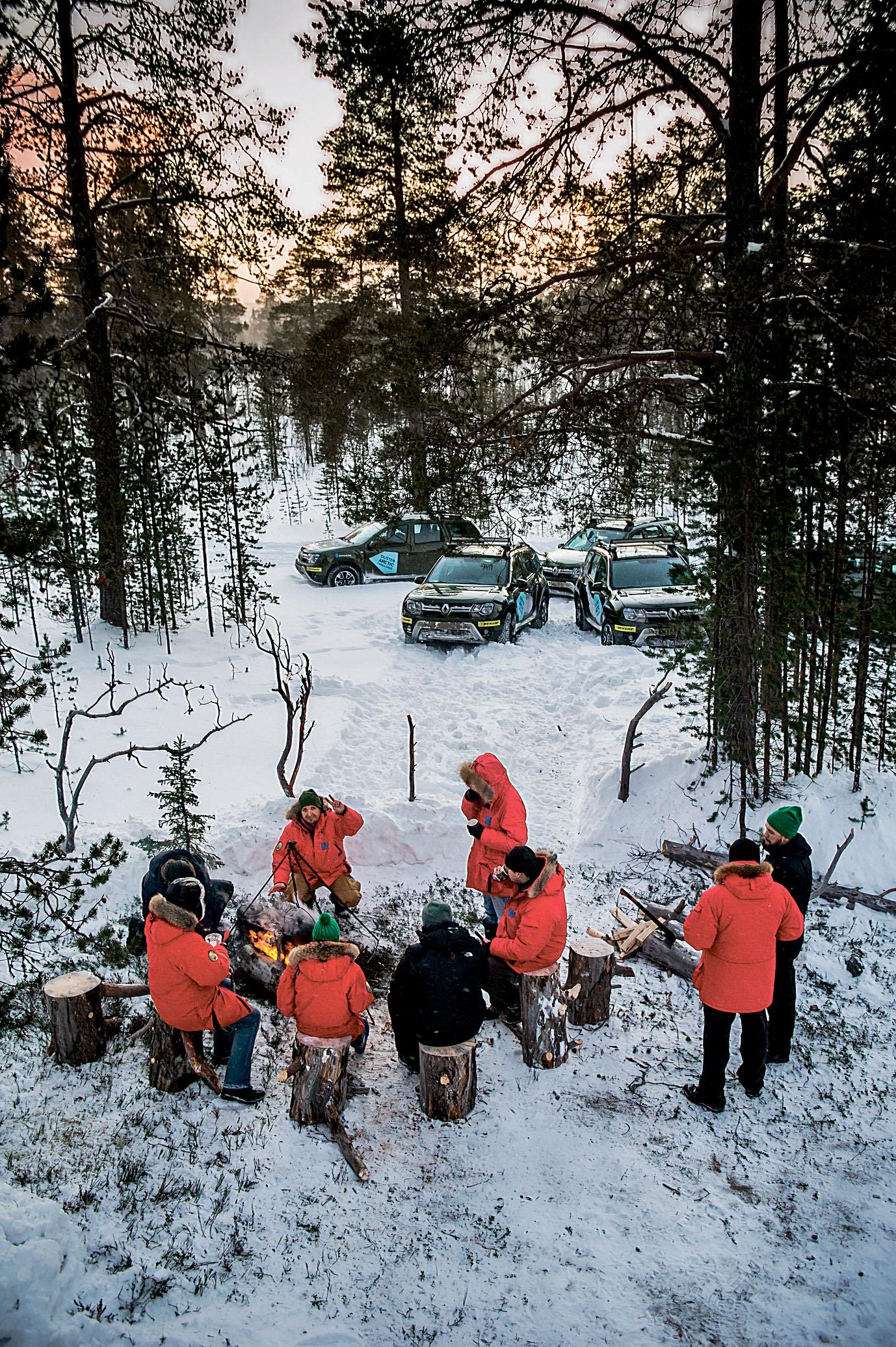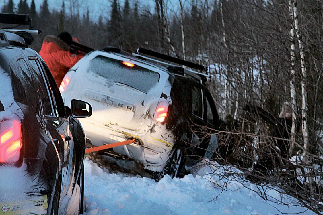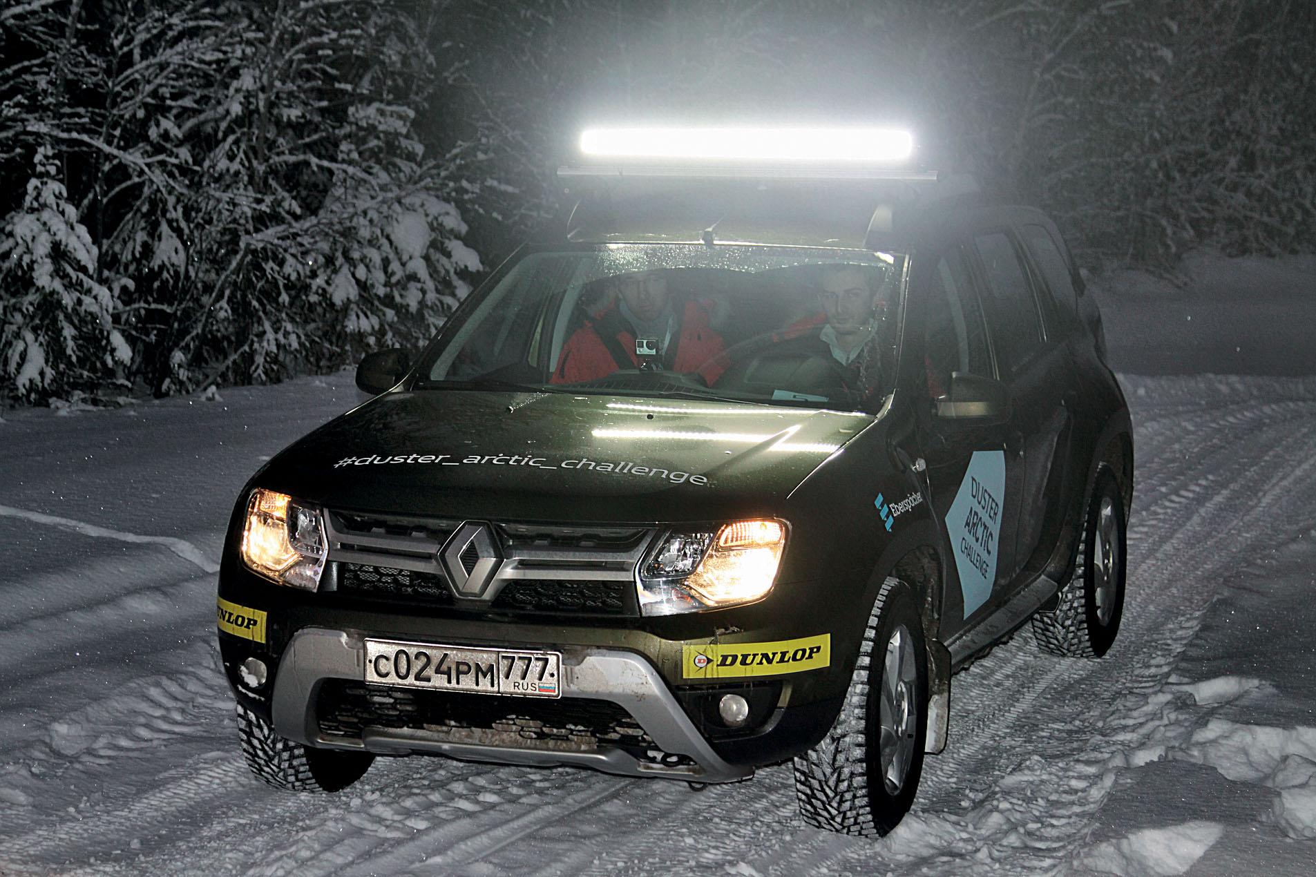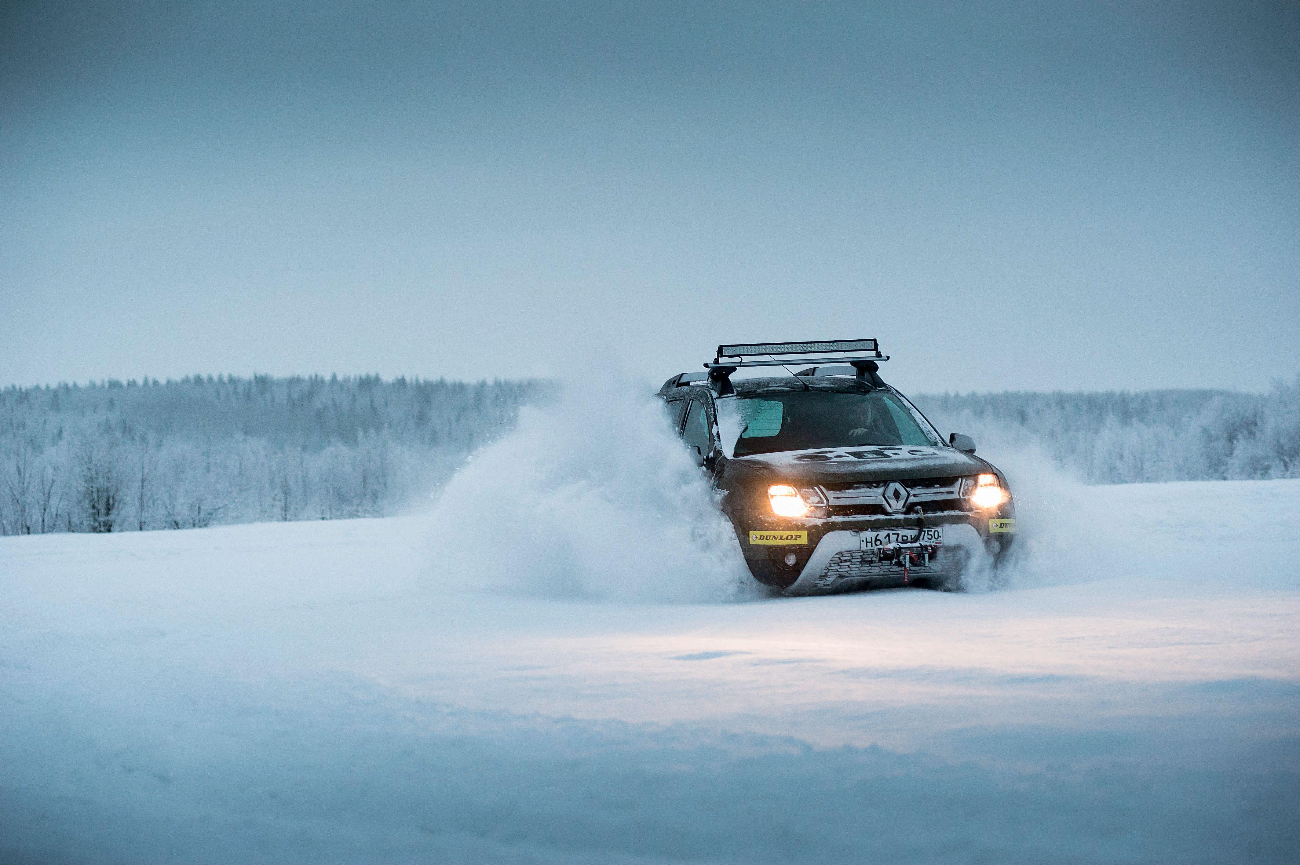 Шины – существенный фактор, сыгравший в поездке позитивную роль. Наши машины были обуты в новые для России покрышки Dunlop Grandtrek Ice02. Не хочется грузить вас информацией о направлении и длине ламелей, форме шипа и новом составе смеси. Скажем лишь, что применяемые здесь решения обеспечили великолепный «держак» на льду, отличный зацеп в рыхлом снегу и предельно предсказуемую управляемость на трассе. По накатанному снегу в виражах машина держалась почти как на асфальте. А если учесть, что такая покрышка для Duster укладывается по цене под отметку в 5000 руб., то лучшего и не посоветуешь.