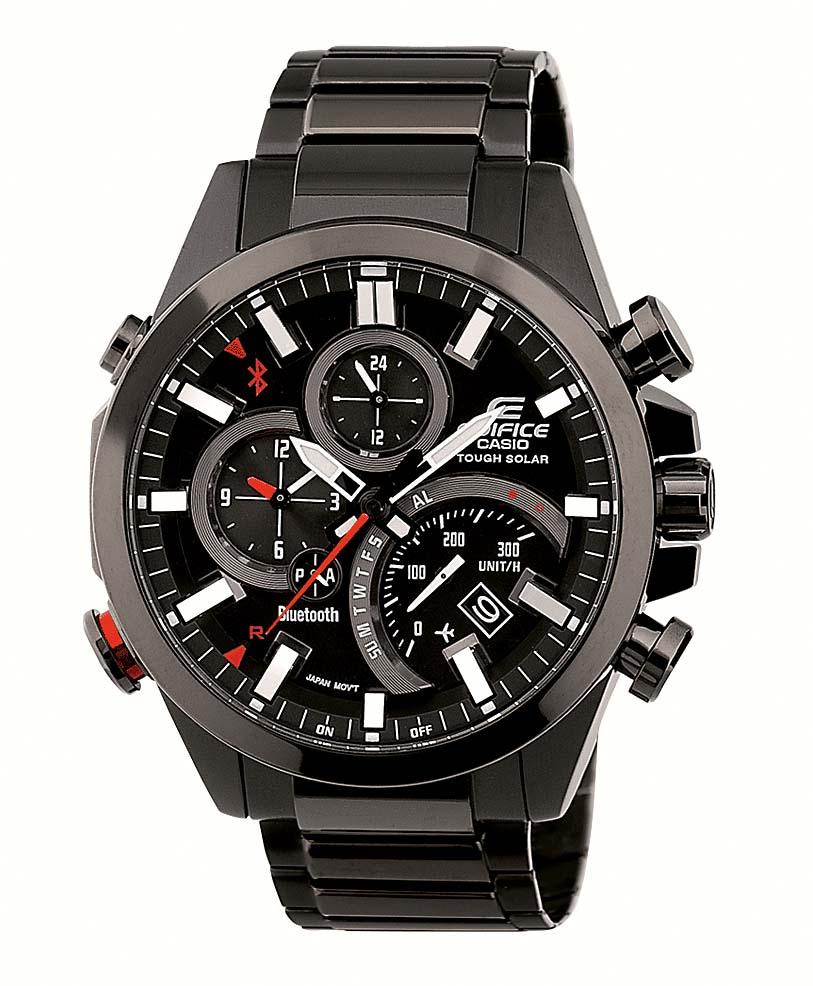 Еще в 2012 году компания Casio представила миру часы, обладающие технологией Bluetooth. С тех пор функционал системы существенно обновился. Новая модель EQB-500 из серии EDIFICE не только оповещает владельца о входящих звонках и новых письмах, но и позволяет управлять музыкальным плеером, а также выполняет функцию «личный тренер». Классические наручные часы, выполненные из нержавеющей стали, водонепроницаемы и обладают высокой стойкостью к механическим повреждениям. Часы подключаются к смартфону одним нажатием кнопки, автоматически подстраиваясь под время текущего географического месторасположения.