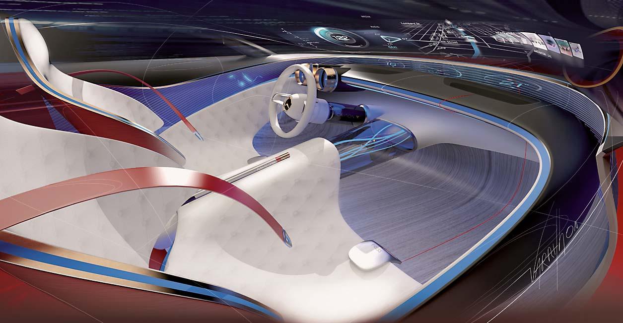 В Штутгарте вошла в пору зрелости дизайнерская парадигма sensual purity – «чувственной чистоты». Дизайнеры полагают пропорции и форму основой образа, который не должен быть перегружен деталями. Команда Роберта Лесника последовательно убирает не только лишние элементы (молдинги, накладки, разъемы кузовных панелей), но и «сбривает» любые лишние грани и ребра, пока экстерьер не станет таким «чистым», каким только возможно. Прямых отсылок к наследию Maybach искать не стоит, концепт – суть переосмысление классических форм, которые невозможно привязать к какой-либо эпохе. Уходящий за горизонт капот, широченная, подчеркнуто округлая корма (по задумкам создателей, она напоминает роскошные моторные яхты), огромные 24-дюймовые колеса, динамичные линии низкой крыши – в этом рецепте действительно нет лишнего.