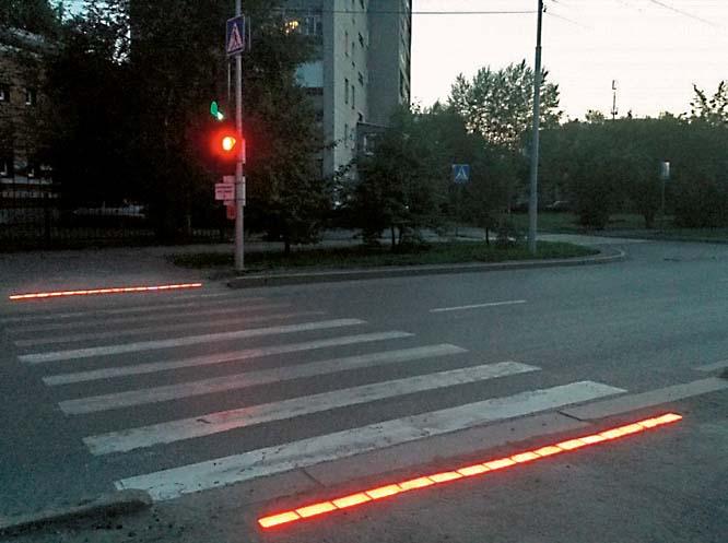 Инновационный светофор появился возле одной из школ в Тюмени. Светодиодная подсветка встроена в асфальт и работает синхронно со светофором для того, чтобы дети лучше видели, можно переходить дорогу или нет.