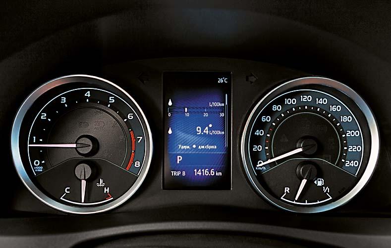 Само собой разумеется, что и в салоне все самое интересное и «вкусное» досталось версиям подороже. Я имею в виду мультифункциональную кожаную «баранку» с обогревом, которую Corolla не имела прежде, и новую мультимедийную систему с 7-дюймовым TFT-экраном. Правда графика этого эффектного девайса точно такая же, как и у дореформенного. Навигация, несмотря на наличие соответствующей кнопки, по-прежнему недоступна, а появляющаяся при включении камеры заднего вида разметка на экране статична, а не рисует зависимую от поворота руля траекторию. Вероятно, бизнес-кейс нынешней модели не предполагает большего, и штатный «штурман» будет доступен при следующем обновлении или на какой-нибудь спецверсии.