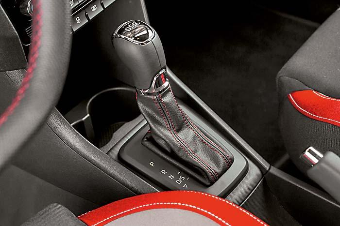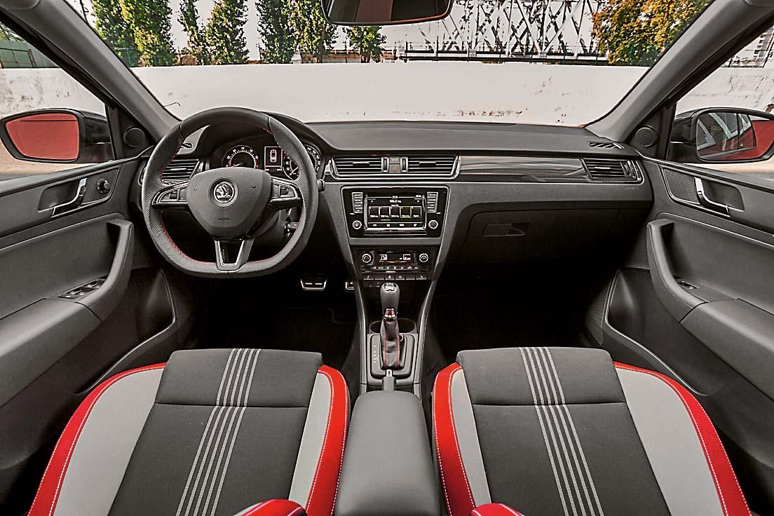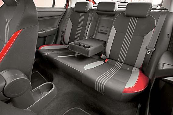Контрастный обвес, маленький черный спойлер«хвостик» на крышке багажника, черные же диски и крыша... В салоне – спортивные сиденья со встроенными подголовниками и трехцветной обивкой, спортивный руль, красная прострочка на нем и отделке рычага DSG.