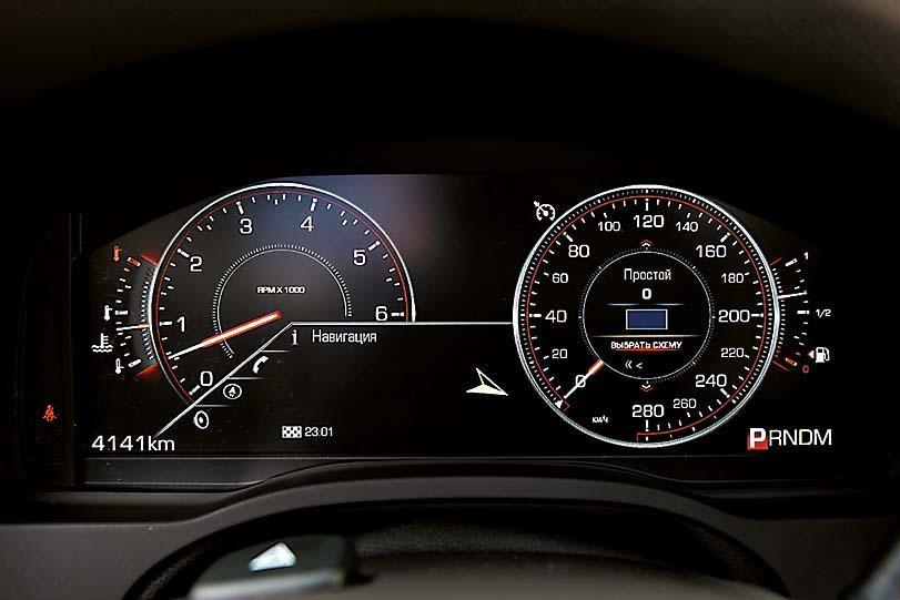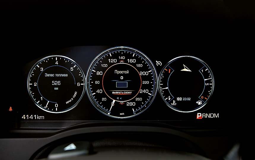 Каков автомобиль, таков, собственно, и двигатель. Здесь он честный, атмосферный, V-образный да еще и восьмицилиндровый. При мощности 409 л.с. он выдает 610 Нм момента, что в теории может позволить ему сдернуть фуру, пусть и не очень большую. Двигатель оснащен системой отключения части цилиндров и при равномерном движении он становится четырехцилиндровым. Понятно, что сделано это для того, чтобы снизить потребление топлива. Ведь даже заявленный расход в городе здесь 18 л на «сотню». Надо признаться честно, нам удалось довести этот показатель до 16, включив режим «овощ».