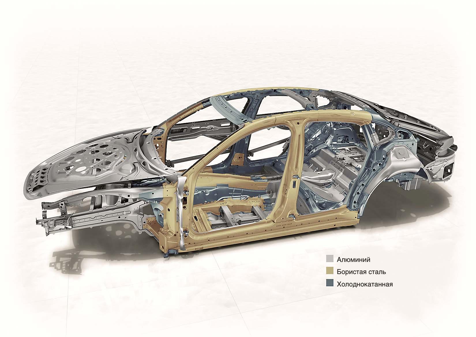 Все кузовные панели изменились по форме, а некоторые из них – еще и в плане материалов. Теперь из алюминия сделаны не только капот, передние крылья, крышка багажника и внешние части дверей, но также крыша и боковые панели. Сама же силовая структура кузова представляет собой своего рода микс различных материалов – сталей, алюминия и пластмасс. Все ради того, чтобы сделать «скелет» максимально легким, прочным и жестким на кручение.