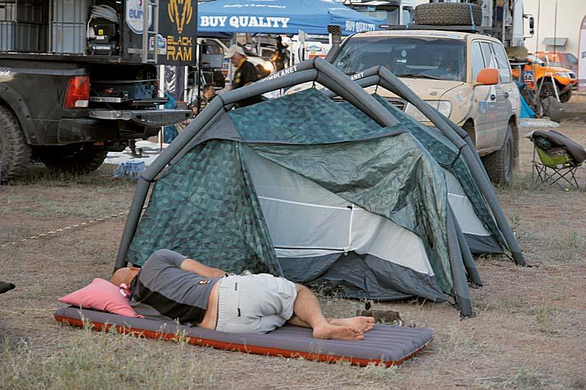 Часа в три направляемся к следующему бивуаку. Гонка идет со скоростью на некоторых участках под 200 км/ч. Нам же регламент запрещает превышать 110 км/ч. В общем, еще какие-нибудь 400 км дороги – и мы в лагере, куда уже начинают приходить первые технички. Впрочем, нашлась команда, которая обошлась без сопровождения. Запчасти и колеса тащат на себе. А механики – пилот и штурман по совместительству.