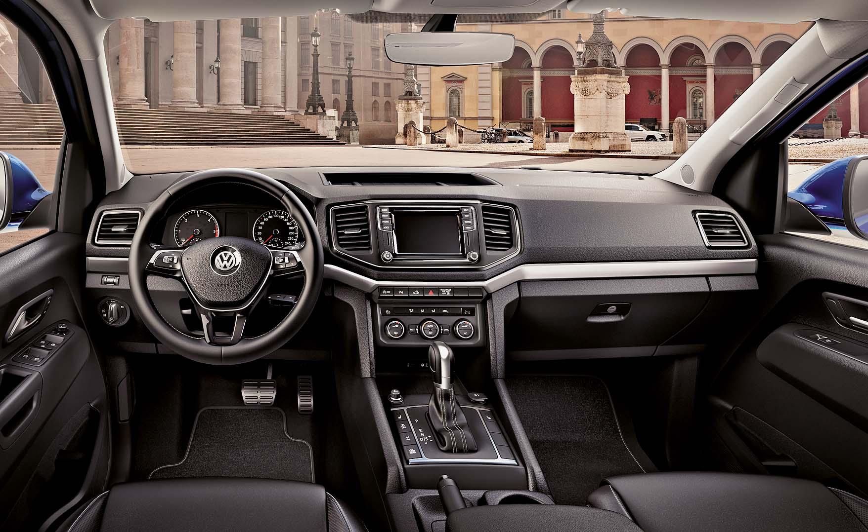 Безусловно, пикап, созданный концерном Volkswagen в лучших традициях жанра, имеет и сугубо утилитарные версии – заднеприводные, с однорядной кабиной, либо в виде «голого» шасси для монтажа надстроек. Но сейчас речь не о них. В окрестностях Мюнхена обновленный пикап представили в новой (самой богатой) комплектации Aventura – со спортивными креслами, настраиваемыми в 14 направлениях, и даже возможностью заказать «заводские» матовые цвета – синий и серый. Еще одна отличительная черта такого Amarok – превращенная в подобие спойлера широкая дуга за кабиной, призванная сделать силуэт более динамичным. Грузовой отсек тестового пикапа укрыт массивной сдвижной металлической шторкой, в кузове – прорезиненное покрытие. Без этих полезных опций в жизни никуда, но и стоят они недешево: в Германии цена Amarok Aventura стартует с отметки в 46 525 евро.