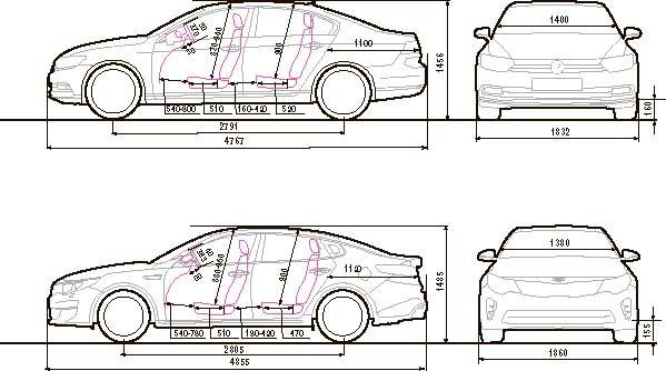Из поколения в поколение Skoda Superb становится крупнее и крупнее, дабы не упустить лидерство в классе по простору и объему багажника. Вот и текущая генерация модели значительно прибавила в размерах. Длина увеличилась с 4833 мм до 4861 мм (+32 мм), а колесная база растянулась с 2761 мм до 2841 (+80 мм). Такая прибавка, конечно же, не могла не сказаться на размерах салона. Впрочем, и Optima в этом смысле не отстает. Она – одна из наиболее близких по размеру одноклассниц. Со сменой поколений корейский седан прибавил к общей длине еще один сантиметр и вытянулся до 4855 мм, а колесная база увеличилась с 2795 мм до 2805 (+10 мм).