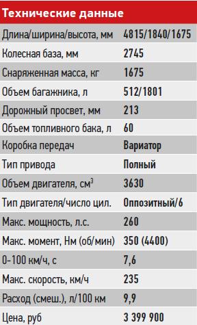 Резервы, позволю себе заметить, отменные. Оппозитная «шестерка» объемом 3,6 л. и мощностью 260 л.с. И никакого тебе наддува! Классика жанра, которую многие автомобильные фирмы нынче променяли на малолитражные агрегаты с турбонаддувом. Все ради снижения налоговых ставок и экологии.