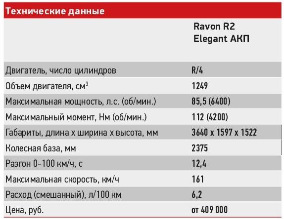 У Ravon R2 есть все задатки, чтобы снискать популярность среди покупателей. У него интересная внешность и неплохое оснащение. И самое главное – очень привлекательная цена. Но малышу бы попрощаться с детскими болезнями вроде непомерно большого расхода топлива и «глючащего» парктроника. Тогда R2 сможет стать отличной альтернативой отечественным «Ладам».