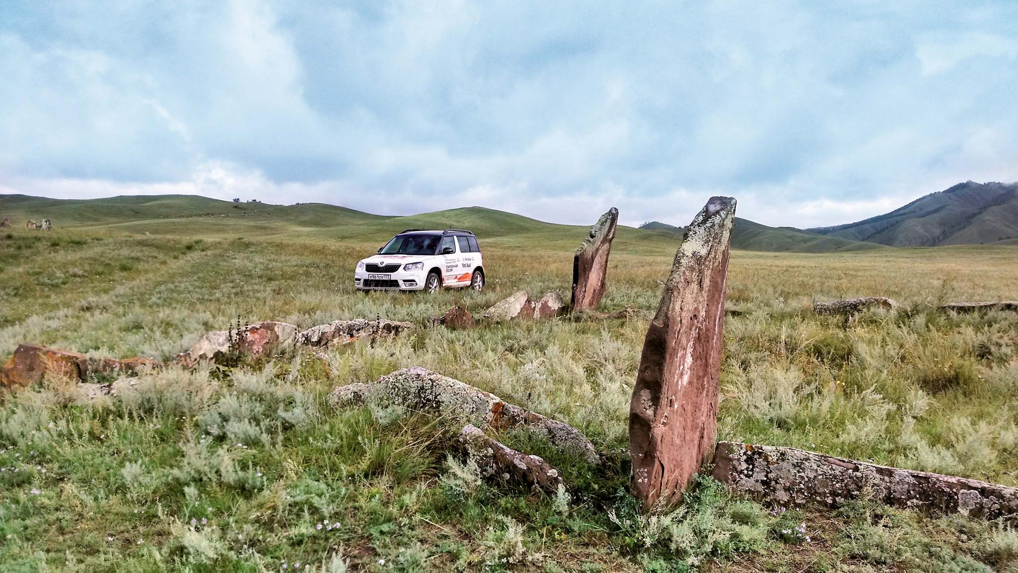 Вдоль дорог Хакасии то тут, то там можно увидеть камни разных размеров, поставленные «на попа» и сгруппированные в круги. Это менгиры, древние мегалиты, в каком-то смысле родственники Стоунхэнджа или дольменов Краснодарского края. Кто и зачем ставил менгиры в этих степях – неизвестно. Есть куча теорий, основная гласит, что камни – это надгробия. Но ни одна из версий не подтверждена.