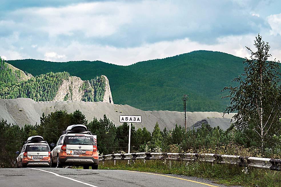 Ради Абазы, ради доставки сланцев и асбеста грузовиками и была построена эта дорога в 1971 году. Пейзажи здесь открываются роскошные: покрытые густыми, живыми лесами из пихт, кедров и лиственниц горы, долины, низкие облака, злые, быстрые реки. Асфальт, правда, с неровностями, хотя в целом неплохой: едешь себе и едешь через перевалы, которые в Саянах все выше и выше: 1006 м, 1037 м, 2214 м...