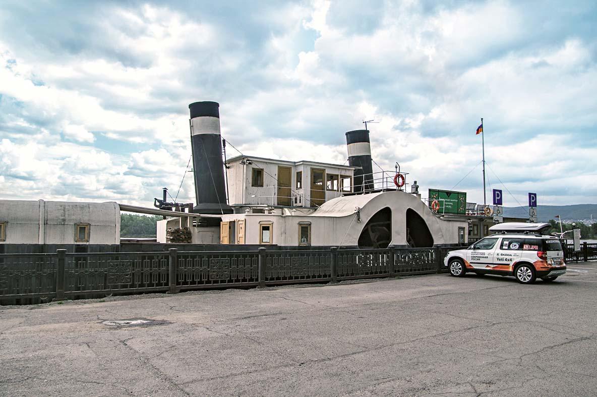 «До них» успели. Подкатили к набережной на пяти вымытых и заправленных ночью Yeti, сфотографировали снаружи пароход, уже 29 лет как вытащенный на сушу возле музея имени Ленина.