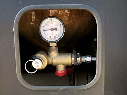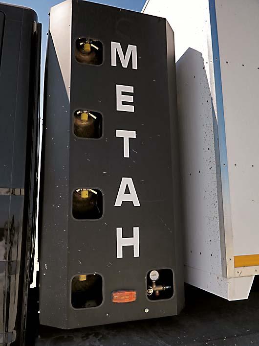 За кабиной размещены девять газовых баллонов общей емкостью 900 литров, в которых находится 250 м3 природного газа под давлением 200 атм. Его хватает на 500 – 600 км пробега. Единственное неудобство – на щитке приборов нет указателя уровня топлива. Водителю приходится выходить из кабины и контролировать показания манометра, который расположен внизу защитного кожуха баллонов.